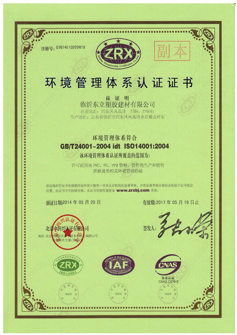 環境管理體系認證證書